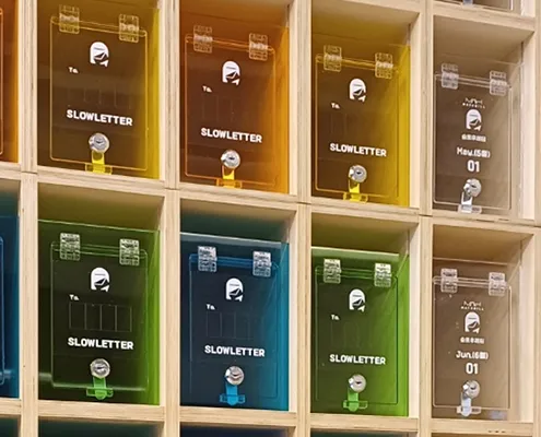 자작나무로 만들어진, 총 432칸의 우편함으로 이루어진 슬로우레터